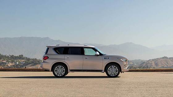 Обновленный Infiniti QX80 посреди пустыни Премьера самого крупного внедорожника марки Infiniti прошла на автосалоне в Дубае. Автомобиль представил Альфонсо Альбайса, директор по дизайну и старший вице-президент Infiniti. Но вероятно, что следующее обновление модели будет представлять уже не он, а Карим Хабиб, прежде главный дизайнер BMW, а с июля этого года — исполнительный директор Infiniti по дизайну. Чем удивит нас японская компания в будущем — пока вопрос. А в настоящем нам показали не просто большой внедорожник, а настоящий корабль пустыни. Когда в Дубае самолет заходит на посадку, он долго летит над пустыней. Здесь она темного песочного цвета с золотым отливом. И именно такого оттенка кузов нового Infiniti QX80, показанного на презентации. Кажется, что его специально подбирали под тон местных дюн, заранее планируя, что именно здесь и пройдет премьера новинки. Буря в пустыне Обычно обновление — это всегда небольшие изменения, затрагивающие в основном внешний вид автомобиля, чуть меньше — дизайн интерьера и совсем немного — техническую «начинку». В случае с QX80 получилось так, что внешний вид внедорожника изменился кардинально, хотя дизайнеры внесли всего несколько корректив. Сглаженные линии предыдущего поколения модели сменились более угловатыми формами: из-за этого даже складывается впечатление, будто автомобиль стал крупнее, хотя его габариты и колесная база остались прежними. Все из-за того, что передняя кромка капота теперь чуть сдвинута вперед и приподнята, решетка радиатора тоже расположена выше, так же как и новые фары, которые фактически примыкают к более выраженной плечевой линии, проходящей от них до самой кормы автомобиля. Задняя часть QX80 тоже стала более угловатой с узкими фонарями и приподнятым задним бампером. Узор решетки радиатора — будто проделанные ветром бороздки в бескрайних песках. В салоне кожей обтянуты не только сиденья и подлокотники, но и дверные панели, стильная прострочка которых напоминает о барханах бескрайней дубайской пустыни. Эти «барханы» — приятные на ощупь, упругими их делает специальная плотная набивка. Вот и оазис Infiniti QX80 можно с уверенностью назвать не только кораблем пустыни, но даже лайнером. И дело не только в «песочных» аналогиях, о которых шла речь выше. В первую очередь — из-за внушительных габаритов: автомобиль шире двух метров, длиннее пяти и почти два метра в высоту. Во вторую — из-за загрузки: QX80 — это полноценная семиместная машина, попасть на борт которой помогают мощные алюминиевые пороги, ширина которых выросла на 20 мм. Багажник тут просто огромный: 1405 литров при сложенных сиденьях третьего ряда, а при полной загрузке пассажирами сюда все равно поместится пара полноразмерных чемоданов, для них свободны 470 литров в багажном отсеке. Почти все улучшения в салоне, которыми может похвастать QX80, сделаны для пассажиров. Именно для них развлекательная система для второго ряда получила мониторы увеличенного размера, с более высоким разрешением. Система «выучила» тридцать один язык (в прошлом поколении была поддержка всего трех), кроме того, теперь в автомобиле есть не только разъем USB, но и HDMI, а также разъемы для наушников и еще два USB-порта для зарядки мобильных устройств. Еще одно важно изменение: каждый пассажир может независимо друг от друга выбирать то, что он хочет смотреть или во что игра