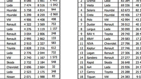 В октябре вазовская Granta стала второй в рейтинге самых популярных новых легковых автомобилей на российском рынке, оттеснив на третью строчку "Весту". Но в ноябре Vesta за счет выхода универсалов набрала такой темп продаж, что прорвалась на второе место и вот-вот спихнет с вершины лидера в лице Kia Rio.