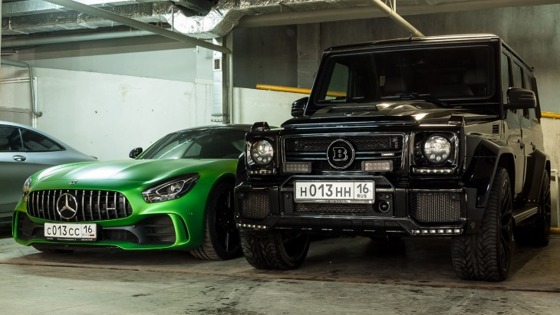 Пользователь сайта Avto-Nomer.ru опубликовал фотографию, сделанной на одной из подземных парковок в городе Казани. На соседних парковочных местах стоят два сверхдорогих "Мерседеса". Первый — купе Mercedes-AMG GT в самом мощном исполнении с литерой "R": такой автомобиль оснащается 585-сильным турбомотором V8, а цены на него начинаются с отметки 12 млн рублей. Рядом с ним разместился внедорожник Mercedes-AMG G 63, доработанный компанией Brabus: такая машина в стоит как минимум 11,6 млн рублей, и это без учёта тюнинга. Здесь есть ещё и третий роскошный автомобиль — купе Mercedes-AMG S 63, но оно попало в кадр лишь частично. Судя по всему, эти три машины принадлежат одному владельцу, у всех транспортных средств на госномере цифры "013" и одинаковые буквы из разных серий. Фото: WRX / Avto-Nomer.ru