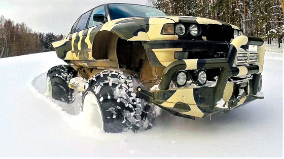 "Классная тачка бэха-семерка"? К этому монстру с подобными панибратствами не подойдешь! Знакомьтесь, Валькирия X7, построенная на базе славной BMW 750i E32. Фактически старую "семерку" посадили на раму от ГАЗ-66, оснастили двигателем и механической коробкой передач от него же, неразрезными мостами и колесами, которые ставились на заднюю ось грузовиков, разбрасывающих удобрение на полях. Колеса с бедлоками, препятствующими разбортировке при движении на низком давлении в покрышках. Индекс X7 наверняка шокирует компанию BMW, готовящую одноименный полноразмерный кроссовер. Еще больше удивления вызовет проходимость – монстр играючи штурмует сугробы, в которых взрослый человек застревает по пояс. https://www.drive2.ru/c/496883599316877611/