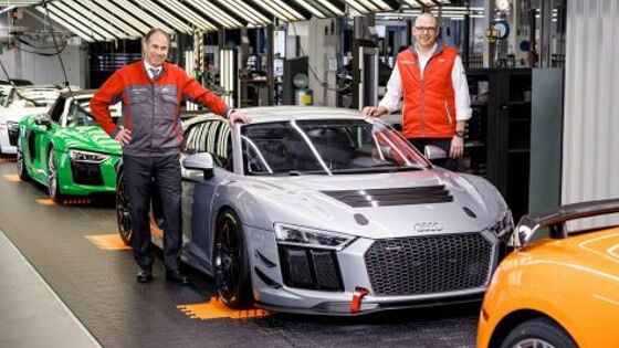 Volkswagen Group, а именно Audi, выпустила уже 50 экземпляров нового R8 LMS GT4. Представленная почти год назад на Нью-Йоркском автосалоне, модель R8 LMS GT4 занимает важное место в линейке гоночных машин от Audi Sport. Купе тесно связано с дорожным R8, но модифицировано под требования категории GT4. Если сравнивать с GT3-вариантом, авто в спецификации GT4 имеет около 60 процентов общих с серийной моделью компонентов. Он даже «питается» за счёт того же 5,2-литрового двигателя V10 с семиступенчатой коробкой передач. Но у него, правда, другая подвеска, аэро-комплект кузовной и настоящий гоночный кокпит. Audi начала выпускать их на одной и той же сборочной линии, что и гражданский R8. Случилось это всего несколько месяцев назад. В декабре автопроизводитель поставил клиентам первые десять экземпляров, а к настоящем моменту времени выпустил уже все 50 штук. «Мы гордимся достижением того, что можем построить гоночный автомобиль в таком близком формате с серийной моделью, - сказали в Audi Sport. - Мы предлагаем готовые к гонкам машины по цене ниже 200 000 евро. Команды получают новый гоночный автомобиль премиум-класса это показала». Помимо R8 LMS GT3 и GT4, Audi также предлагает TCR-спецификацию RS3.