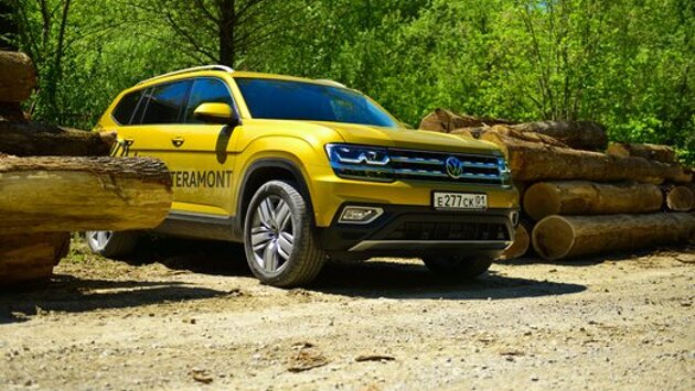 Прямиком из США (штат Теннесси) на российский рынок вышел самый большой на данный момент автомобиль в линейке немецкого бренда Volkswagen. Модель Teramont делалась для американского рынка, для американского клиента. Хорошо это для нас или нет – решит российский покупатель. Мы же попробуем вкратце описать, что же это такое, Volkswagen Teramont. Сразу стоит отметить такой момент: «Фольксваген» настоятельно рекомендует называть автомобиль внедорожником. Более того, на сайте немецкого автопроизводителя и вовсе пропала надпись «кроссовер», как класс авто. Что ж. Можно долго спорить, о том, что такое внедорожник, а что – нет. Оставим это для наших читателей. Мы же назовём Teramont словом из трёх букв. Конечно же – SUV. А вы о чём подумали? Sport Utility Vehicle — «спортивно-утилитарный автомобиль») — специфический североамериканский тип автомобиля, официально классифицируемого как лёгкий грузовик, но при этом предназначенного для повседневной эксплуатации в качестве пассажирского транспорта. Экстерьер этого SUV достаточно величавого размера выполнен в стилистике современного дизайна бренда Volkswagen. Да, по сути, можно намекнуть, что «Терамонт» – это увеличенный Tiguan. Но это лишь на первый взгляд. Виной всему уже ставшая популярной среди всевозможных китайских копировальных брендов створчатая радиаторная решетка. Но в Teramont она выведена на новый уровень. Хромированные линии, переходя в элементы передней светодиодной оптики, визуально расширяют и без того почти двухметровый автомобиль. В салоне удивительного не много, но смотрится свежо. Привычные ваговские элементы (руль, клавиши, монитор, электронная приборная панель) удачно сочетаются с декоративными вставками из псевдо алюминия и аналогичного дерева. Известно, что есть у нас противники такого исполнения интерьера, но стоит отметить, что смотрится очень и очень неплохо. Но есть тут и то, чего на одноклассниках «Терамонта» мы не могли отметить в полной мере. Речь о третьем ряде сидений. Здесь он действительно работает. Не просто для детей и хоббитов, а для вполне рослых взрослых граждан. С ростом порядка 180 см наш коллега здесь вполне комфортно расположился, с местом перед коленями и над головой. Показатель отличный. И пробраться на этот самый третий ряд можно комфортно, в полный рост, а не словно солдаты вьетконга по тоннелям. Можно с уверенностью сказать, что своих японских, корейских и американских коллег по месту в салоне немец уделал. Едет большой SUV уверенно не только по трассе, но и по пересеченной местности. Стоит сразу отметить расход. В смешанном режиме он составил примерно 11 литров на сотню километров пути. Прошли мы в общей сложности порядка четырёхсот километров дорог. Причём, довольно разных. От горных сочинских асфальтных до гравия и грунта под Краснодаром. То есть, составить полное впечатление об управляемости «Терамонта» у нас было и время, и возможность. Так вот. По трассе автомобиль идет очень уверенно. Этому есть простое объяснение: это длинная колесная база и четкий руль. В совокупности это работает прекрасно. Плюс ко всему – спортивный режим передвижения, нагружающий руль приятной тяжестью. На грунте особых проблем также не возникло, но при передвижении на высоких скоростях по кочковатой поверхности стоит внимательно относиться к возможному сносу задней оси. Если на трассе длинная база – это