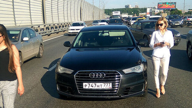 Другой водитель, Олег Слабачков, рассказал, что видел Audi на похожих номерах всего несколько недель назад. «В воскресенье в самый «час пик», когда все с дачи ехали, водитель раскорячился на Горьковском шоссе, не доезжая до МКАДа около 5-7 км.