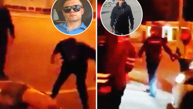 Присутствующий при этом беспределе полицейский вел себя отстраненно и не пытался оттащить дуэт агрессоров. При этом в разгар драки он неожиданно достал из кобуры неизвестный пистолет и выстрелил в воздух. Впрочем, это не произвело на избивавших водителя мужчин никакого эффекта.