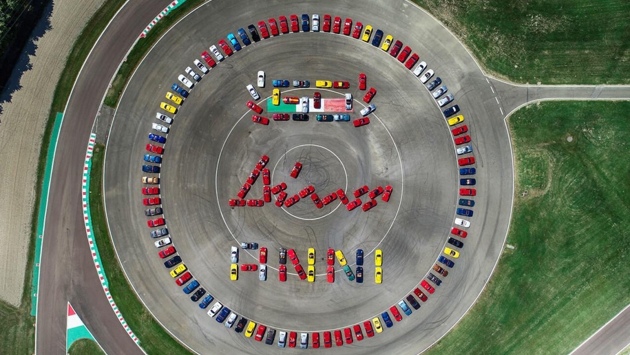 Более 150 спорткаров Ferrari Dino удалось собрать вместе в честь 50-летнего юбилея модели. Участники праздничного мероприятия, которое состоялось на территории итальянского автодрома Фьорано, выстроились в цифру 50, слова Dino и Anni (от итальянского anni — годы). Марка Dino была создана Ferrari для выпуска доступных и недорогих спорткаров, способных конкурировать с Porsche 911. Так как Энцо Феррари не хотел уходить в низший сегмент рынка, то от упоминания «Феррари» решено было отказаться. Название машины получили в память об умершем сыне Энцо — Альфредо «Дино» Феррари. Первой дорожной версией Dino, а по совместительству первой построенной Ferrari негоночной машиной, стал Dino 206 GT 1968 года. Дизайн спорткара разработал Леонардо Фиораванти, работавший в Pininfarina. Dino 206 GT комплектовался поперечно установленным двухлитровым двигателем V6, отдача которого составляла 180 лошадиных сил. Всего в период с 1968 по 1969 было выпущено 152 подобных автомобиля. В 1969 году на смену Dino 206 GT пришел 195-сильный Dino 246 GT. От предыдущей версии он отличался увеличенной колесной базой и кузовом из стали вместо алюминия. Модель предлагаясь в кузове «купе», а после 1971 в линейке появилась «тарга». Последней моделью, выпускавшейся под маркой Dino, стало четырехместное купе Dino 308 GT4. Машина отличалась угловатыми формами (заслуга дизайнеров Bertone), а также двигателем V8. 2,9-литровый агрегат с четырьмя карбюраторами Weber и углом развала блока цилиндров 90 градусов выдавал 255 лошадиных сил. Под маркой Dino модель 308 GT4 выпускалась вплоть до 1976 года. После чего машину стали выпускать как Ferrari.