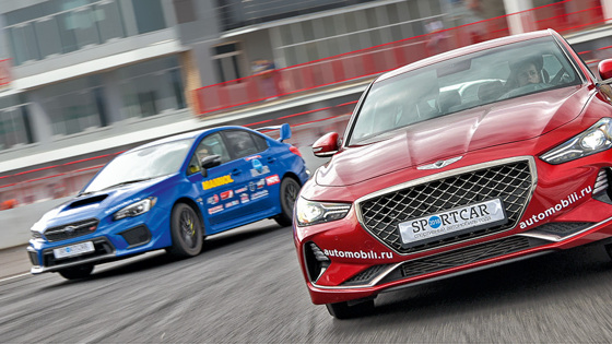 По большому счету, машине именно в России действительно не повезло – задиристая 3,3-литровая V-образная «шестерка» мощностью 370 л.с. обитает где-то в Европах и Америках. С ней G70 способен без особого напряга разогнаться до «сотни» за какие-то 4,7 с. Нам же пока приходится довольствоваться куда более скромным 2-литровым двигателем, который в самой мощной модификации выдает всего лишь 247 «лошадок». Неудивительно, что на гоночной трассе корейский спортседан, несмотря на столь претенциозное название, выглядит не слишком убедительно: до «сотни» добирается за 7,5 с, что явно не тянет на рекорд. Тем не менее сами создатели младшего из «Генезисов» убеждены в отличных динамических качествах своего детища. Так, шеф-дизайнер марки Люк Донкервольке недвусмысленно заявил: «Мы продолжим совершенствовать искусство сочетания спортивного характера и элегантности для всех моделей как в нашей нынешней линейке, так и в будущем». Ирина Сидоркова: «На треке автоматическая коробка не всегда понимает, какую передачу надо включать. Но в городских условиях ее работа будет идеальной» Мотор забыли положить Однако вялые попытки G70 Sport продемонстрировать хоть какие-то способности в спурте ожидаемо окончились неудачей, ибо «спортивный» довесок к индексу модели обозначает всего-навсего название комплектации. Проехав по автодрому меньше половины круга, Борис Шульмейстер разочарованно отметил: «Мотор забыли положить в машину...» Впрочем, справедливости ради тут же добавил: «Правда, Chevrolet Camaro тоже не едет. Ну а Subaru WRX STI только выглядит, как настоящий спорткар, – на деле машина очень тяжелая, не хочет поворачивать». Роман Русинов Профессиональный автогонщик с 1998 года, автор лучшего для российских пилотов результата в гонке «24 часа Ле-Мана» «Машина хорошо держит дорогу, стабильно управляется, неплохо сбалансирована. Звук мотора приятен, «автомат» достаточно сноровисто переключает передачи. корейцы смогли создать подобие «трешки» BMW, при этом их автомобиль дешевле» Кроме того, оказалось, что задержка реакции мотора на нажатие акселератора слишком велика. Да и тормоза совершенно не впечатляют. Как считает, например, Михаил Грачев, по эффективности они практически такие же, как на Volkswagen Polo: «Очень дорожные, педаль приходится продавливать глубоко». Хотя подвеску нельзя назвать расхлябанной, она настроена на комфорт. Это мешает выбирать оптимальную траекторию с заездом на поребрики: машину начинает раскачивать Такая пусть отчасти и шутка – все равно не лучший комплимент в адрес машины, претендующей на полноправное членство в премиальном сегменте. Чувствуется, что передние колеса недостаточно широки, поэтому при резком торможении они сразу начинают проскальзывать вместо того, чтобы активно помогать сбросить скорость. Чудеса на виражах Чего-либо экстраординарного в гоночных упражнениях от G70 никто не ждал, и тем неожиданнее стал тот факт, что он смог-таки удивить видавших виды гонщиков. Да, мотор слабоват. Да, тормоза вялые. Да, подвеска слишком мягкая для скачек по поребрикам. Но управляемость оказалась на высоте, что и подтвердил Алексей Васильев, ввинчиваясь в очередной вираж: «Машина очень прогнозируемо поворачивает, хорошо рулится. Не хватает остроты реакции, но за движением руля следует точно». Александр Кобенко: «Салон шикарный, по десятибалльной шкале а