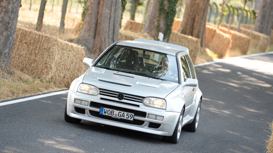 Среди классических Мерседесов, Хорьхов и BMW, выставлявшихся на фестивале в замке Дайк, этот Volkswagen Golf III выглядел не на своем месте. На вид — обычный тюнинг-проект, посвистывающий турбиной: уйма воздухозаборников, расширенные арки. Но на самом деле это уникальная машина от заводского отделения Volkswagen Motorsport. Она могла стать такой же легендой, как Lancia Delta Integrale или Mitsubishi Lancer Evolution. Могла, но не стала — концерн Volkswagen отказался от участия в чемпионате мира по ралли. Триумфальный приход немецкой команды в WRC состоялся только в наши дни. Конкурент для Лянчи и Subaru В начале девяностых менеджмент компании собирался участвовать в чемпионате мира по ралли. В те годы за победу в абсолютном зачете сражались гонщики на полноприводных турбомашинах так называемой группы A: Lancia Delta HF Integrale, Toyota Celica GT-Four, Subaru Impreza, Mitsubishi Galant VR-4, Nissan Sunny GTi-R. В январе 1992 года проекту дали зеленый свет, а уже в начале сезона-1994 команда Volkswagen должна была стартовать на первом этапе WRC, Ралли Монте-Карло. Но просто построить раллийную машину было недостаточно. Правила требовали сперва выпустить хотя бы 2500 серийных полноприводников, чтобы получить омологацию FIA по группе A. То есть за два года предстояло параллельно спроектировать и выпустить сразу две машины — серийную и раллийную! Работы разделили между Фольксвагеном и внешним подрядчиком — компанией Schmidt Motorsport. У них уже был опыт совместной работы: команда SMS выступала в чемпионате DTM на седанах Audi V8, принеся «кольцам» два чемпионских титула, а еще строила предсерийные Audi Coupe S2. Ни камня на камне На первый взгляд, превратить скромный Volkswagen Golf третьего поколения в полноприводного турбо-монстра — не слишком сложная задача. Полноприводная трансмиссия с вискомуфтой и независимая задняя подвеска уже были заложены в конструкцию Гольфа — они ставились на модификацию VR6 Syncro. Снабдить турбиной двухлитровый мотор от Гольфа GTI тоже не великая проблема. Но у фольксвагеновцев уже был неудачный опыт с использованием серийных решений — Rallye Golf второго поколения был сделан по похожему рецепту, и был неконкурентоспособен. Поэтому новый Golf для ралли перелопатили практически целиком. На проект пригласили лучших из лучших: супер-Гольфом занималось сразу несколько конструкторов, прежде работавших в одной из мощнейших раллийных команд — заводском коллективе Toyota Team Europe. Получившаяся машина известна под внутренним индексом A59. За шасси отвечал бывший главный конструктор TTE, австриец Эдуард Вайдль. Сильно менять переднюю подвеску он не стал, ее схема аналогична стандартной. Хотя в деталях — все другое: рычаги и поворотные кулаки свои, колея расширена на 76 миллиметров, а крепление стоек к кузову перенесено выше, чтобы увеличить ход (этим обусловлены выступы по углам капота). А вот заднюю подвеску спроектировали полностью оригинальную — это многорычажка на подрамнике (вместо примитивной схемы на косых рычагах у серийного Golf VR6 с полным приводом). Трансмиссией занимался еще один выходец из TTE — бывший шеф-инженер Карл-Хайнц Гольдштайн. Он разработал совершенно новую шестиступенчатую коробку передач. Причем момент между осями распределялся через дифференциал фирмы Steyr Daimler Puch с электронным управлением, степень блокировки которого менялась при помощи пакета фрикционов с гидроприводом. Такая система на две головы совершеннее простенькой трансмис
