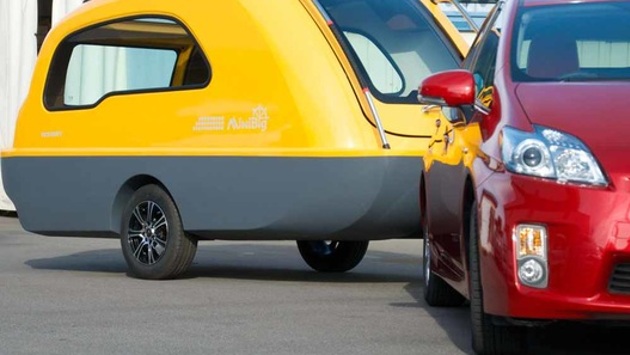 Новый кемпер-амфибия имеет достаточно компактные размеры – 4 390 мм в длину, 1 640 мм в ширину и 1 930 мм в высоту. Тем не менее, разработчики утверждают, что в MiniBig с относительным комфортом могут на какое-то время заселиться до трех человек. Кемпер оснащен раскладным спальным местом, столиком, раковиной, внутренним освещением и тому подобное. Вход в прицеп организован с передней и задней сторон: кузовные панели в этих местах просто откидываются вверх. Благодаря форме кузова и днища, а также материалам, из которых изготовлен MiniBig, он обладает уверенной плавучестью. При этом, судя по опубликованному разработчиками видео, при переводе кемпера в водный режим снимать колеса не требуется. Кроме того, прицеп снабдили не только фаркопом, но и еще подвесом для лодочного мотора, так что передвигаться MiniBig может не только при помощи мускульной силы обитателей. В США анонсирован первый в мире отель-багажник... Помимо вышеперечисленного, кемпер снабжен еще и наружными поручнями, и площадкой, которая, похоже, предназначена для ныряния. Таким образом, MiniBig предназначен не только для любителей порыбачить с комфортом, но и для обычных туристов. Пока MiniBig продается только в Японии, причем стоит отнюдь недешево – как минимум, 2 462 400 иен (чуть более 22 000 долларов или почти полтора миллиона рублей).