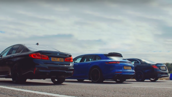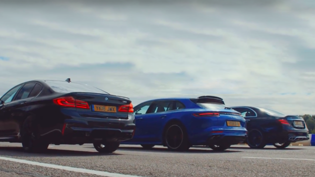 Издание Top Gear сравнило в скорости по прямой три «заряженных» модели от немецких марок: седаны BMW M5 и Mercedes-AMG E63 S, а также гибридный универсал Porsche Panamera Turbo S E-Hybrid Sport Turismo. Последний участник оказался самым мощным из троицы — 680 сил и 850 Нм момента. Полноприводный BMW M5 (F90) оснащен 4,4-литровым двигателем V8 с двумя турбонагнетателями. Его отдача составляет 600 сил и 750 Нм момента. 4,0-литровая «восьмерка» Mercedes-AMG E63 S выдает 612 сил (величина момента — 850 Нм). Оба седана разгоняются до первой сотни за 3,4 секунды. Видео: Top Gear В активе Porsche Panamera Turbo S E-Hybrid Sport Turismo — четырехлитровый бензиновый битурбомотор V8 (550 сил), восьмиступенчатая роботизированная коробка PDK с двумя сцеплениями, интегрированный в нее электродвигатель (136 сил) и литий-ионные батареи емкостью 14,1 киловатт-часа. Паспортное время разгона до сотни — те же 3,4 секунды.