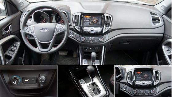 Видно, что над внешним видом кроссовера потрудились очень хорошо. Детально прорисованы отдельные элементы дизайна, от хромированных вставок до формы воздухозаборников в бамперах, придающие машине свой — кому-то годный, кому-то не очень, но свой экстерьер! Например, на парковке он смотрится не хуже дорестайлингово Тигуана, Витары нью или Митсы ASX, а на дороге многие не понимают что это за машина и как к ней относится, ни то это "китаец", а ни то новая версия какого-нибудь популярного кроссовера. На одном из Московских автосалонов, в недалеком прошлом, я заходил в «Чайна таун» и там стоял запах дешевого обувного магазина: смесь клея, пластика и еще не ясно чего. К моему удивлению, тут респиратор не понадобился. В салоне пахнет кожей, так же, как пахнет в Тойотах, Хондах или в шкафу, где висит новый ремень. Салону уделили не меньше внимания, чем экстерьеру. Да, он из жесткого пластика, но за счет того, что он [пластик] разнофактурный, ощущение уж совсем недорогой машины не появляется. Кроме того, центральная консоль вообще покрыта черным глянцевым лаком с хромированными вставками. Кнопки и крутилки не люфтят, нажимаются уверенно. Даже сенсорный ЖК дисплей стоит в углублении чтобы не бликовал — забота о мелочах — это уже дорогого стоит! В нашем испытуемом стоят кожаные сидения и такие же вставки в дверные карты, а руль так вообще с перфорацией. Да, кожа не Ягуаро-Лендроверская, а скорее, как байкерская косуха, но зато добротная. Эргономика салона вполне удачная, все органы управления и полочки с нишами на своих местах, расположение которых интуитивно понятно. Позаботились создатели и о практичности: задняя спинка складывается 40/60, довольно большой багажник на 370 литров. Но, не без досады. Лично мне так и не удалось настроится в "кок-пите", что бы и руль нормально держать и педали нажимать. Стопу всегда приходилось сильно задирать вверх чтобы нажимать на педаль. Ну, или тормозить краешком педали, но все мы знаем к чему это может привести. Возможно виной всему, именно, отсутствие регулировки руля по вылету. Позавидовав женщинам на каблуках у которых есть высокая опора для пятки, поехали. Машину двигает 2-х литровый мотор на 100 сил в содружестве с 7-ми ступенчатым автоматом, со спорт режимом и понижающей передачей, отдающие все усилие только на передний привод. На холостых в машине довольно тихо, слышно пожуживание мотора, шипение печки — все это приглушается довольно не плохой акустической системой. В общем все очень прилично. А вот стартует машина практически с 2-тыс оборотов. Как- бы деликатно я не старался нажимать на педаль акселератора, но тронуться с менее высоких оборотов не выходило. На скорости, слышно не столько мотор, сколько шум от колес и окружающую среду. Но, тут надо отдать должное тому, что это сделано в угоду облегчения всей конструкции автомобиля — кроссовер, а весит всего 1.8 Т., по идее это должно сказаться на экономии топлива или динамики. За безопасность отвечают балки жесткости, проходящие по всему кузову, а вот металл и шумоизоляция тут занимают не главенствующие места. В тесте C-NCAP Tiggo 5 получил 5 звезд. Отдельного внимания заслуживает руль. Во-первых само рулевое колесо очень эргономичное оптимальной толщины, с выемками под большие пальцы, что обеспечивает удобный хват. Во-вторых руль очень чуткий, малейшие изменения угла сказываю