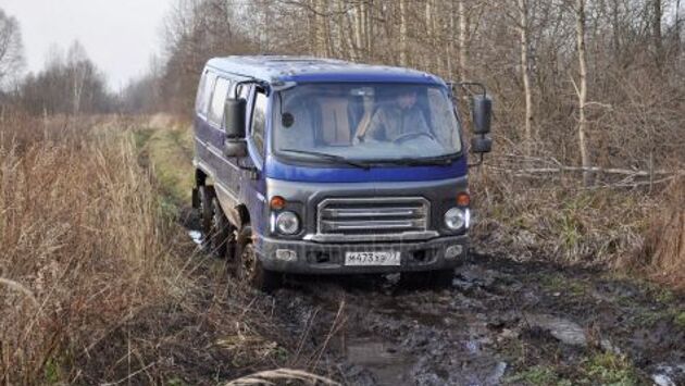 Шесть колес микроавтобуса «Бурка» сразу притягивают взгляд. По аналогии с грузовиками понимаешь, что машина наделена неплохими внедорожными качествами. А внешний вид выгодно отличает модель от привычной уже «буханки». Модель разработали в 2013 году совместным коллективом сельскохозяйственной академии им. Тимирязева и НИИКА. Машина предназначалась для работы в сложных условиях в сельской местности, лесных массивах. За привлекательным внешним видом скрываются большие возможности по перевозке групп людей и их багажа. В силуэтах кузова угадываются элементы «Соболя» того времени. Но главное в машине - это шасси. Машина имеет полный привод. Но в нормальных условиях задняя (третья) ось остается не подключенной. Только в сложных условиях бездорожья задействуют дополнительный инструмент повышения проходимости. Вся конструкция смонтирована на раме известной модели грузовика из Китая Foton. Оттуда же перекочевал и двигатель. Турбодизель Gummins развивает мощность 142 л.с., и работает в паре с механической трансмиссией с шестью рабочими диапазонами. На борт внедорожный микроавтобус способен взять до 7 пассажиров. В грузовой отсек удастся загрузить до 2 тонн багажа. Суммарная полная масса машины обозначена на уровне 5,2 тонны. Машина так и не пошла в серию, несмотря на интерес потенциальных покупателей. Однако вся документация сохранена, и проект еще можно довести до производства.