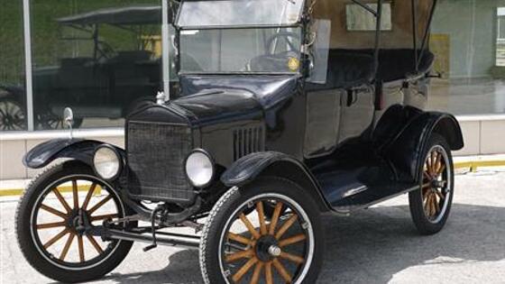 Ford Model T - один из первых массово доступных автомобилей, ставший символом своего времени. Коммерческий успех модели "с конвейера" принесли приспособленность к плохим дорогам, просторный салон, долговечность и доступная цена. У выставленного на продажу кабриолета кожаный салон, складной верх, механическая коробка передач, 2,9-литровый двигатель и 22 лошадиные силы. Развивает до 60 км/ч. За почти столетнюю жизнь Ford проехал 2,2 тыс. километров.