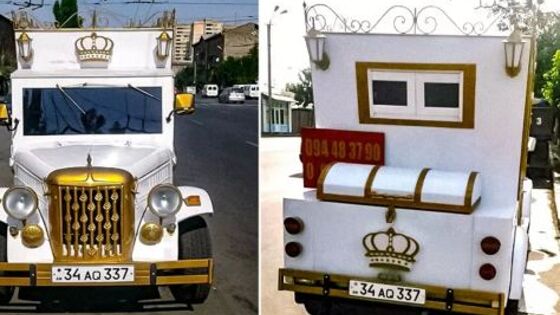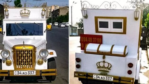 С целью открыть свой бизнес и заработать на свадебных перевозках, многие автомобилисты переделывали свои ретро-автомобили под неповторимые и уникальные транспортные средства. Одним из таких изобретений является необычная карета, построенная на базе советского внедорожника ГАЗ-69А, который был выпущен в 1963 году. Самодельное транспортное средство ничем не хуже современных лимузинов и пользовалось огромной популярностью у свадебных церемоний. Стандартную базу газона удлинили. Вход в транспортное средства, для пассажиров, только с правой стороны. Необычная карета имеет прямые линии и окрашена в белый цвет, который дополняют кованые изделия переливающиеся золотом. Над водителем, для реалистичности обстановки, повесили небольшие уличные фонарики, выполненные под старину. Кроме необычного дизайнерского решения кузова, с умом подошли и к внутренней отделке автомобиля. Салон приобрёл полностью кожаные вид, который оснастили мягкими сидениями и столиком, укомплектованным сервизом для новобрачных. У "Газовской" кареты стандартный бензиновый мотор, с мощностью 76 лошадиных сил и объемом 2,4 литра. К нему добавляется механическая коробка передач, удлиненный кардан и задний привод. За всё свое время существования автомобиль ГАЗ-69А "Карета" намотал на одометре всего 7 000 километров. За чудо техники его владелец хочет получить 430 000 рублей.
