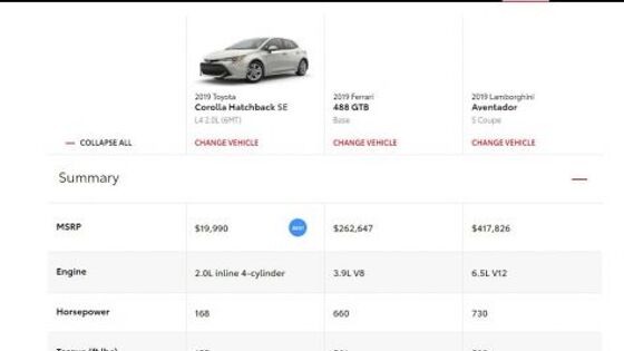 Совсем недавно блогер-любитель протестировал Toyota Corolla 2020 модельного года и был приятно удивлён сочетанием комфорта и современных технологий. Автомобиль имеет достаточно много общего с хэтчбеком Corolla 2019 года. Этот факт неудивителен, но что делать, если хочется сравнить автомобиль с другими? Вам поможет приложение "redditor". Сайт поможет сравнить автомобиль с Hyundai Elantra GT, Honda Accord и т.д. В этом вопросе пользователи не ограничиваются выбором традиционных конкурентов. В результате на этом сайте можно сравнить хэтчбек Corolla SE с ультрароскошными моделями, такими как: Bentley Mulsanne и Rolls-Royce Phantom. Приложение раскрывает все функции транспортных средств. Так из него мы узнали, что Corolla имеет систему предупреждения о выезде с полосы, по сравнению со своими оппонентами, автомобиль лидирует в рейтинге экономии топлива. Конечно, авто уступает по мощности, ведь его 2,0-литровый четырёхцилиндровый двигатель выдаёт только 168 л.с и 210 Нм крутящего момента. Ferrari 812 имеет в подкапотном пространстве двигатель мощностью в 562 "лошади", это больше, чем у Corolla SE, но меньше, чем у Lamborghini Aventador S. Toyota Corolla предлагает посадочные места для пяти человек, боковые подушки безопасности и адаптивный круиз-контроль. Также есть автоматически фары дальнего света, боковые зеркала со встроенными сигналами поворота и доступное спутниковое радио.