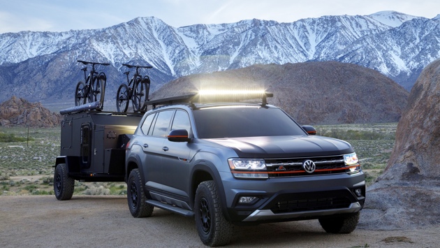 Американский офис Volkswagen представил концепт Atlas Basecamp для маунтинбайкеров. Семиместный кроссовер оборудовали лифт-комплектом подвески, внедорожными покрышками, экспедиционным багажником с креплениями для велосипедов и дополнительным блоком светодиодного освещения. Внешность Volkswagen Atlas Basecamp разработана сотрудником калифорнийского центра дизайна марки Алексом Эрлом. Концепт построен на базе модификации SEL Premium и окрашен в сочетание серого Platinum Gray и черного Black Uni с матовыми и оранжевыми акцентами. Под капотом «Атласа» трудится стандартная смещенно-рядная «шестерка» объемом 3,6 литра. Мощность — 279 лошадиных сил. Она совмещена с восьмидиапазонной коробкой передач и системой полного привода 4Motion. Дополнительно концептуальный кроссовер оборудован лифт-комплектом подвески H&R, обвесом Air Design, 17-дюймовыми колесами fifteen52 Traverse MX Concept, багажником Front Runner Slimline II, внедорожным светодиодным освещением и защитными аксессуарами для интерьера из каталога Volkswagen Accessories. Также к нему прилагается экспедиционный трейлер HIVE EX. Внутри него находится кровать, солнцезащитный тент, небольшая кухня с раковиной и холодильником, резервуар для воды, баллон с пропаном, переносной туалет, душ и съемные выравнивающие домкраты. В базовое оснащение топовой версии Volkswagen Atlas SEL Premium входит виртуальная панель приборов, система камер кругового обзора, ассистент парковки, полностью светодиодная оптика, трехзонный климат-контроль, отделка салона кожей, подогрев передних и задних сидений. Цена такой машины в США начинается от 48 395 долларов (3,1 миллиона рублей).