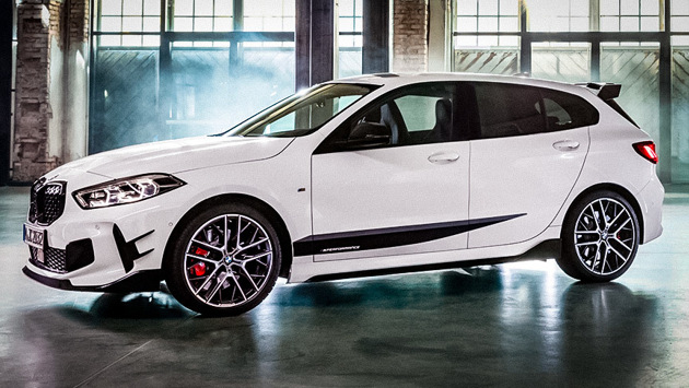 Не прошло и дня с момента презентации нового поколения BMW 1 Series, как компания обнародовала каталог с аксессуарами M-Performance. Обвес для новой "копейки" был протестирован в аэродинамической трубе. Он включает передний сплиттер, задний спойлер, пороги и задний диффузор, а также особые корпуса зеркал. Помимо этого, в каталоге указаны руль со вставкой из алькантары и карбоновыми подрулевыми лепестками для модификаций с коробкой Steptronic, тормоза M-Performance, 18-дюймовые диски с Y-образными спицами либо двухцветные 19-дюймовые. Напомним, BMW 1 Series со сменой поколения "переехала" на переднеприводную платформу FAAR и получила трехцилиндровый турбомотор мощностью 138 л.с. в сочетании с 8-диапазонным "автоматом". Кроме того, автомобиль предложат с двухлитровым дизелем с отдачей 190 л.с., для которого будет доступен как передний привод, так и система полного привода xDrive. Топовый M140i обзаведется 306-сильным двигателем объемом 2 литра. Спереди у хэтчбека стойки МакФерсон, сзади - многорычажная схема, причем даже в базовой версии. Полный привод, естественно, с муфтой отбора тяги на заднюю ось. Британские СМИ предполагают, что новинка подорожает и будет стоить от 23 тыс. фунтов стерлингов (1,9 млн рублей по текущему курсу). Пока же цены на модель в России начинаются от 1,6 млн рублей.