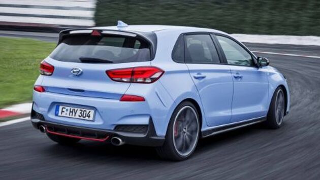 Отличие усиленной версии Hyundai i30N от стандартной версии хэтчбека по внешности состоит исключительно в наличии колесных дисков диаметром 19 дюймов, под которыми находятся тормозные суппорты красного цвета с логотипом N, двойного раструба системы выхлопа, а также аккуратного вида заднего спойлера. Испытание на дороге. На первый взгляд, в данном автомобиле нет ничего особенного. Но довольно часто он привлекает внимание любителей уличных заездов на скорость. Нередки ситуации, когда при остановке на светофорах, рядом оказывается другой автомобиль, водитель которого предлагает сразиться в скорости. Поначалу таких можно игнорировать, но их настойчивость заслуживает определенного внимания. Спустя несколько минут после старта, автомобили соперников оказались далеко позади. Данная модель авто и без того отличается неплохой скоростью, а при необходимости можно еще и использовать спортивный режим. Желающие получить больше драйва могут изменить настройки NCustom. Параметры двигателя. В качестве силовой установки на данном автомобиле используется усиленный двигатель объемом два литра, и мощностью а 249 л.с. (есть версия с 275 л.с.). Время разгона автомобиля до 100 км/ч составит 6,1 секунды, хотя по ощущениям это намного быстрее. Главная особенность его заключается не в мощности, а в крутящем моменте, который достигает своего пика в 353 Нм уже на полутора тысячах оборотов. Это позволяет во время передвижения в городских условиях лишь немного касаться педали газа. Также хотелось бы отметить четкое включение передач механической коробки в 6 ступеней, которое непроизвольно сравнивается с работой четко отлаженного ружейного затвора. Здесь чувствуется согласованная работа инженеров по отладке кулисы выбора передач. Для нажатия педали сцепления практически не требуется усилий, что позволяет левой ноге меньше уставать. Ходовая часть. За неделю проведения ходовых испытаний, жалоб на удобство использования сцепления практически не было. Также приемлемой была и жесткость установленной подвески. Для имеющихся амортизаторов предусмотрены три режима регулировки. Но даже при использовании экстремальных настроек, автомобиль прибавляет в жесткости совсем немного, придерживаясь мягкости хода. С увеличением скорости передвижения происходит как бы распускание подвески, отчего машина становится более комфортной. Намного более агрессивным на дороге автомобиль становится при включении спортивного режима подвески, руля и двигателя. Машина буквально превращается в яростного хищного зверя, что подкрепляется соответствующим рычанием. Это происходит благодаря возможности соответствующей настройки выхлопной системы, с наличием отсечки при сбросе газа. На самом деле, машина просто создана для скоростной езды, что является её стихией. Поэтому наиболее оптимальным местом для испытаний становится гоночный трек. Для проведения был приглашен пилот-профессионал Константин Терещенко. Проведения тестового заезда. В это время полностью проявились все таланты усиленного автомобиля. Он быстро двигался по кольцевой трассе, оглашая близлежащие районы звуком своего турбомотора. За время проведения заезда механизмы особо не нагрелись, несмотря на большую степень нагрузки. Вне зависимости от режима езды, производительности автомобиля всегда хватало. Стоимость 