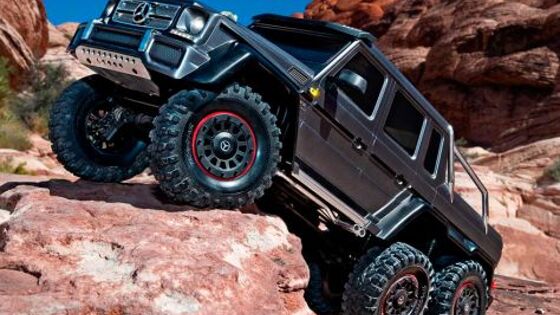 Внедорожник Mercedes-AMG G63 получил колесную формулу, чтобы преодолевать сильное бездорожье. Traxxas именует TRX-6 G63 6x6 самой продвинутой внедорожной машиной. Данный внедорожник оснастили новой рамой, адаптированной для эксплуатации колесной формулы 6х6. Подвеску усилили, чтобы увеличить ресурс и повысить внедорожные качества. Машина получила дополнительный мост и 3 дифференциала с дистанционной блокировкой T-Lock, а еще раздаточную коробку. TRX-6 G63 6x6 является водоустойчивым и имеет пакет светодиодного освещения, который имеет свой источник питания. Следует подчеркнуть, что данный автомобиль укомплектовали отличными углами въезда, которые вместе с большим клиренсом дают возможность авто проходить даже через самые сложные препятствия, и высокими шинами, способными обеспечить высокую проходимость на разных типах покрытия. Машину выделяют хромированные составляющие спереди, дуги на багажном отделении и колесные диски черного цвета с красными акцентами.