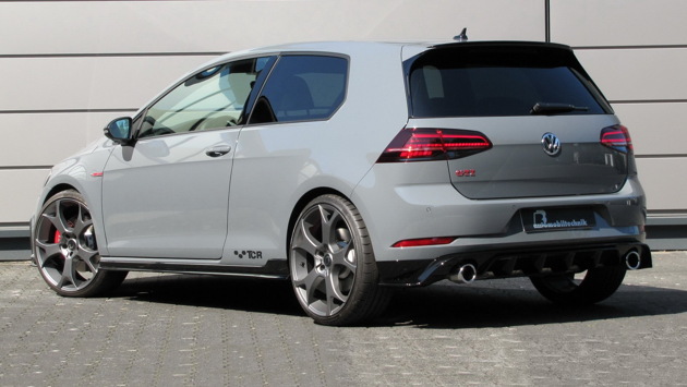 Мотористы мастерской B&B Automobile Technik подняли отдачу хот-хэтча Volkswagen Golf GTI TCR до 450 лошадиных сил. Максимальный комплект доработок включает в себя прошивку двигателя, замену турбины, установку производительного интеркулера, гоночной выхлопной системы и нового катализатора. Тюнинг-ателье B&B Automobile Technik подготовило четыре уровня форсировки 2,0-литрового двигателя хэтчбека Volkswagen Golf GTI TCR. На первом уровне вмешательства мощность возрастает со «стоковых» 290 лошадиных сил и 370 Нм крутящего момента до 340 сил и 450 Нм. Стоимость подобных доработок — 1 498 евро (около 110 тысяч рублей по текущему курсу). На втором уровне производительность повышается до 360 лошадиных сил и 470 Нм, на третьем — до 400 лошадиных сил и 520 Нм. Цена работы — 3 950 евро (около 289 тысяч рублей) и 7 950 евро (около 582 тысяч рублей) соответственно. На высшем, четвёртом уровне форсировки, отдача достигает 450 лошадиных сил и 580 Нм крутящего момента. Увеличить мощность турбомотора на 55 процентов стоит 12 950 евро — почти 950 тысяч рублей! В стоимость включено усиление 7-ступенчатой роботизированной коробки DSG. Желающие улучшить управляемость «заряженного» хэтчбека могут доплатить за занижение подвески 298 евро (около 22 тысяч рублей) или 1798 евро (около 131 тысячи рублей) за глобальную модернизацию ходовой части и частичную замену спортивных компонентов шасси на гоночные. Ещё в 3 298 евро (около 241 тысячи рублей) обойдутся фирменные колёса B&B с 20-дюймовыми кастомными дисками и спортивными шинами размерности 235/30 R20. Инженеры B&B Automobile Technik подсчитали, что переднеприводный Golf с 450-сильным двигателем разгоняется до первой «сотни» за 4,5 секунды — на 1,1 секунды быстрее обычного GTI TCR. Для сравнения новый Mercedes-AMG A 45 S с «самым мощным в мире четырёхцилиндровым мотором» тратит на аналогичное упражнение 4,0 секунды. Разницу в характеристиках обеспечивает полноприводная трансмиссия 4Matic+.