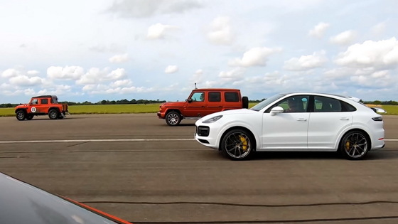 Видео: BMW X4 M, Porsche Cayenne Turbo и Mercedes-AMG G 63 сразились в дрэге с гоночным Land Rover