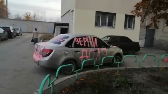 Машину саратовца исписали фразами «Верни долг» и «Люблю»