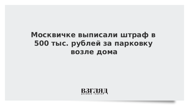 Москвичке выписали штраф в 500 тыс. рублей за парковку возле дома
