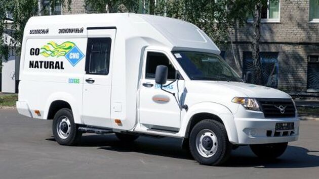 Новая модификация УАЗ «Профи» создана Ульяновским автозаводом при содействии специалистов ООО «Автодом». Отличительной особенностью является применение ГБО. Поэтому, ресурса одной заправки может хватить на 1000 километров пути. Конструкция машины предусмотрена инженерами так, что между рамой и кузовом можно продольно разместить от двух до четырех газовых баллонов по 50 литров каждый. Кузов транспортного средства изготовлен с применением современных композитных материалов. Отсеки для грузов и пассажиров отделены между собой перегородкой. При этом каждая часть имеет улучшенные климатические параметры, а также шумоизоляцию. Пассажирская часть имеет 5 кресел с тремя ремнями безопасности. В качестве опций предусмотрены жидкостный отопитель салона, а также светильники. О параметрах силовой установки, трансмиссии и других важных технических деталях информации пока нет. Отсутствуют также сведения о ценах и дате начала продаж универсального фургона от УАЗ.