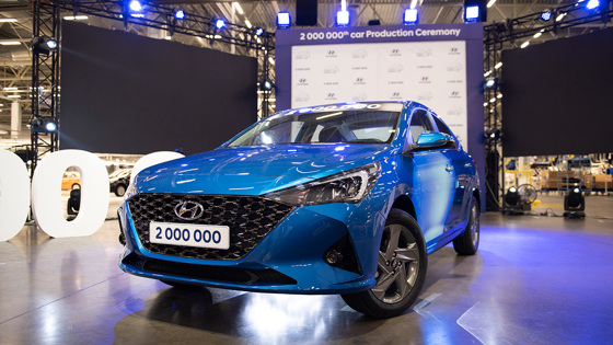 Завод компании Hyundai проектной мощностью 150 тысяч автомобилей в год открылся в промзоне Каменка под Санкт-Петербургом осенью 2010 года, а первые товарные Hyundai Solaris там выпустили в начале 2011-го. Позднее к соплатформенным седанам и хэтчбекам Hyundai Solaris и Kia Rio присоединился и кроссовер Hyundai Creta. В январе 2014 года Solaris первого поколения обновился, а в начале 2017 года начался выпуск седана второго поколения, рестайлинг которого состоялся сейчас. Отметку в один миллион выпущенных автомобилей российский завод корпорации Hyundai преодолел в 2015 году. Двухмиллионный автомобиль показали 18 февраля — им стал обновлённый Hyundai Solaris. Из всех собранных на заводе автомобилей почти половина приходится на «Солярисы» — всего их сделали порядка 930 тысяч. Ещё 800 тысяч машин — автомобили марки Kia, на Creta приходится около 245 тысяч экземпляров. Дотошные корейцы подсчитали, что если все выпущенные на петербургском заводе машины выстроить в цепочку, то она будет длиной от Парижа до Владивостока: 10 часов пути на самолёте. Инвестиции в развитие завода за все годы составили 1 млрд долларов, а на 2021-й запланировано открытие здесь же собственного завода двигателей. Но что же сам Hyundai Solaris? На что рассчитывать покупателям обновлённой версии, продажи которой начнутся уже в этом месяце? Ведь на конвейере петербургского завода обновлённые седаны уже вовсю собирают — вперемешку с «Кретами» и автомобилями Kia. Прежде всего, автомобиль изменился внешне, а также получил некоторые опции, которые должны сделать его более комфортным. Решетка радиатора стала значительно шире. В зависимости от комплектации автомобиля цвет ее будет различаться: более дорогим «Солярисам» полагается «темный хром», тем, что подешевле — матовый чёрный пластик. Кроме того, обновлённый автомобиль получил полностью светодиодные фары рефлекторного типа — для ближнего и дальнего света. Форма задних фонарей не изменилась, но «рисунок» они получили новый. Изменилась и форма бамперов — как спереди, так и сзади. Также, традиционно для процедуры рестайлинга, появились колесные диски новой формы. Комбинация приборов седана теперь снабжена цветным экраном между шкалами спидометра и тахометра. Такая панель будет доступна для автомобиля начиная со средних комплектаций. В оснащение «Соляриса» с завода теперь входит медиасистема от «Яндекса» с навигатором и Алисой — эта опция будет доступна для машин в максимальной комплектации. Восьмидюймовый экран новой медиасистемы немного выступает из центральной консоли. Пятидюймовый экран более доступных версий переделок интерьера не потребовал. Кроме того, у Соляриса видоизменились рукоятки климат-контроля, а для дорогих версий предусмотрено глянцевое обрамление центральной консоли. На сиденьях добавилась электрическая регулировка поясничного подпора. На водительском кресле она предусмотрена уже в стандартной комплектации. Наряду с задними, для автомобиля доступны и передние парктроники, а зеркала складываются посредством электропривода. И при включении омывателя автоматически включается рециркуляция в климатической системе. Также для обновлённого «Соляриса» будет доступен дистанционный запуск с ключа — на расстоянии до 80 м от машины. Кроме того, в обновлённом Солярисе должно стать потише — за счёт внедрения подкрылков из прессованного войлока уровень шу