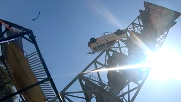 Видео: машину сбросили на самый крепкий в мире батут