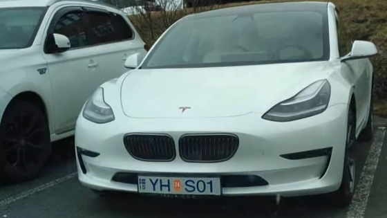 В Сети появилась фотография Tesla Model 3 с передней частью кузова, оформленной в стиле BMW. В шутку электрокар, судя по номерам зарегистрированный в Исландии, уже прозвали Tesla 3-Series.