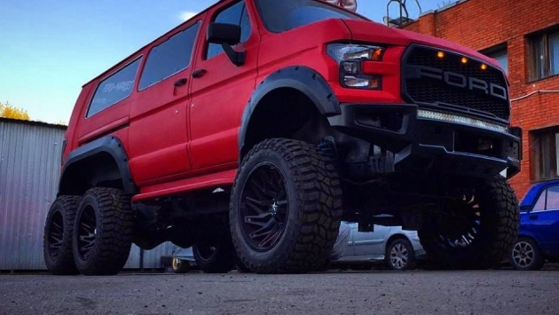 Тюнинг-ателье Ford Market представило шестиколёсный вездеход из коммерческого фургона Ford E-Series. Снимки авто опубликованы на странице компании в Instagram. Своё детище тюнеры назвали Raptor Bus. Вездеход создан на основе третьего поколения микроавтобуса Ford Econoline, сборка которого производилась с 1975 по 1991 год. Специалисты ателье модернизировали шасси для возможности установки третьей оси и покрасили кузов авто в красный цвет. Передняя часть вездехода (радиаторная решётка, фонари и бампер) были взяты у пикапа Ford F-150 Raptor. Кроме того, машину также оснастили расширителями колёсных арок и вседорожными колёсами. Отдельно стоит отметить светодиодную ленту под радиаторной решёткой и шесть дополнительных фар на крыше вездехода. В движение Raptor Bus приводит бензиновый мотор V8 мощностью 214 «лошадей» рабочим объёмом 5,8 л. Напомним, американская автокомпания Ford запустила в Мексике производство возрожденного внедорожника Ford Bronco в исполнении Sport. Читайте также: В Китае стартовали продажи обновленного Ford Territory S