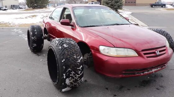 Американский автоблогер «Bug Bmx» представил в интернете свою новую работу - Honda Accord с модифицированными колёсами. Представленная Honda Accord получила колёса от большого грузовика, что в разы повысило её проходимость. Блогер признался, что идея создать уникальный внедорожник на базе небольшого седана возникла внезапно, но она показалась очень интересной. 37-дюймовые колёса имеют 16 дюймов в ширину, поэтому для их установки понадобилось модифицировать ходовую часть, так как штатные детали не могут работать с такими огромными покрышками. В странах СНГ такой тип модификации называется «проставкой». Она позволяет устанавливать дополнительные железные пластины для установки ступиц и колёс, которые делают обычно из 0,5-дюймовой стали. Полученная конструкция приваривается к 12-дюймовым стальным распоркам. Автоблогер сказал, что потратил не так много времени на создание модифицированной версии Honda Accord, чем он изначально рассчитывал. Уникальная конструкция седана позволяет машине ездить практически по любому бездорожью. Сообщается, что автомобиль отлично преодолевает горы снега, грязи и даже каменистые склоны. Единственное, что не сказал блогер - насколько быстро ломается ходовая часть, не предназначенная для таких огромных колёс.