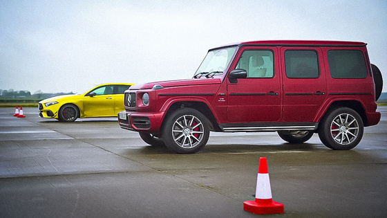 YouTube-канал Carwow провел дуэль между двумя принципиально разными автомобилями одной марки. Внедорожник Mercedes-AMG G 63 бросил вызов мощному хэтчбеку Mercedes-AMG A 45 S."Заряженная" модификация "гелика" оснащена 4,0-литровым двигателем V8 с двумя турбонагнетателями (585 л.с. и 850 Нм). До 100 км/ч он разгоняется за 4,5 секунды, в то время как его оппонент динамичнее на 0,6 секунды. В его арсенале один из самых мощных 2,0-литровых турбонаддувных двигателей в мире. Отдача в 421 л.с. и 500 Нм для компактного автомобиля - это серьезная заявка! Впрочем, результат схватки вас удивит. Смотрите видео и делитесь в комментариях.