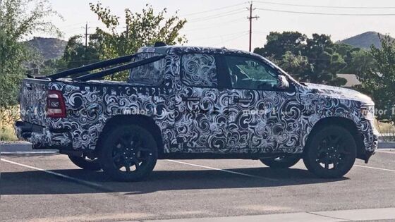 В Сети появились интересные снимки грузовых авто Ram1500, одетых в камуфляж. Авто отличается более низким дорожным просветом и некоторыми элементами подвески. Снимки сделали на территории Аризоны. Речь может идти о тестовых авто для новых высокопроизводительных уличных грузовиков. Есть вероятность, что новая модификация получит надпись Ram SRT Hellcat. Грузовые транспортные средства хуже приспособлены для условий бездорожья. При этом клиренс меньше чем в стандартной полноприводной версии 1500. Легкие шины Bridgestone предназначаются для езды по городским улицам. По всей видимости, грузовик получил кабину Quad-Cab, а также кузов 5'7 ". Речь идёт о самом маленьком полноразмерным грузовом авто Ram На фото видно, что транспортное средство будет оснащаться независимой настройкой задней подвески. Ещё модель оснащается колесами, применяемыми на ушедшей грузовой заряженной модификации Ram SRT-10 марки Dodge, получившей силовой агрегат от спортивной Viper.