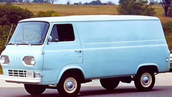 Развозная модель американского производства Ford Econoline отмечает в этом году свое 60-летие. Автомобиль по праву можно первым в семействе моделей, выпуск которых американские производители продолжали вплоть до 2014 года, время от времени, представляя их новые поколения. Особенностью модели Econoline E-100 становится вагонная компоновка. Потенциальным покупателям автомобиль предлагали в трех различных версиях. Так, производители предлагали: фургон, пикап и микроавтобус. Экстерьер модели напоминал английскую машину Ford Thames 400E. Все модели были оснащены стандартным мотором, работающим в паре с пятиступенчатой механической коробкой передач. Производители гордились тем, что модель является крайне востребованной и популярной на мировом рынке, учитывая постоянно увеличивающиеся продажи. Для потенциальных покупателей было важно то, что машина считается простой и доступной на протяжении всего периода эксплуатации.