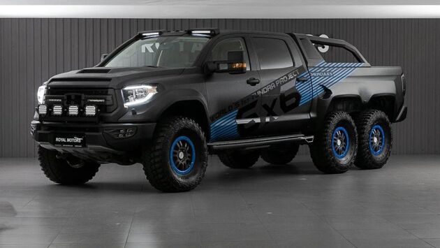 22 миллиона рублей. Это самая дорогая Toyota Tundra на российском рынке. И это не просто так, ведь это еще и самая первая Tundra с колесной формулой 6х6. В настоящее время существующий в единственном экземпляре шестиколесный пикап продают в Москве в автосалоне Royal Motors.