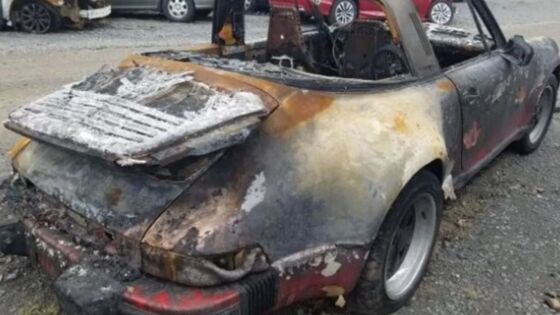 В продаже появились почти полностью сгоревшие Aston Martin V8 Vantage 1970, Porsche 911 Turbo Targa, 911 Carrera 2 и BMW Z8 2000. Костяки этих машин стоят от нескольких сотен до пары тысяч долларов.