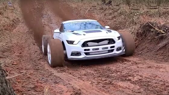 Чтобы проверить, насколько его Мустанг лучше стокового, он решил сравнить его со слегка модифицированной версией. Результат был предсказуем. MUDStang оказался намного более эффективным в подъеме на влажный холм. Но это не из-за его мощности, а, скорее, из-за более подходящих шин.