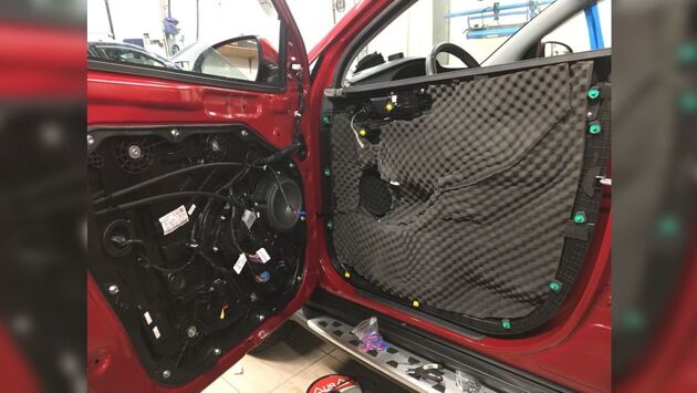 Устранение шума с помощью шумоизоляционных материалов. Шумоизоляция состоит из нескольких слоев материала и прокладывается в проблемных местах. В полностью герметичном салоне показатель шума снижается на 40%, что положительно влияет на создание комфортных условий при движении. Не существует материалов, которые могли бы свести показатель шума на ноль. Но уменьшить его до оптимальной отметки позволяет многослойная изоляция. Полная изоляция состоит из следующих слоев: -Вибропласт - полимерный материал, который клеится на обезжиренные места кузова. -Сплэн - клеится на вибропласт. Состоит сплэн из пенопоэлитиена. Также вместо сплэна применяют и битопласт. Этих материалов достаточно, чтобы создать минимальную шумоизоляцию автомобиля. Для более тщательной обработки проблемных мест используют маделин. Это прокладочный материал, который снижает скрипы и вибрации пластика или металла. Используя все материалов изоляции можно добиться снижение шума на половину. Конечно полностью устранить шум не удастся, но довести до комфортного показателя вполне возможно.