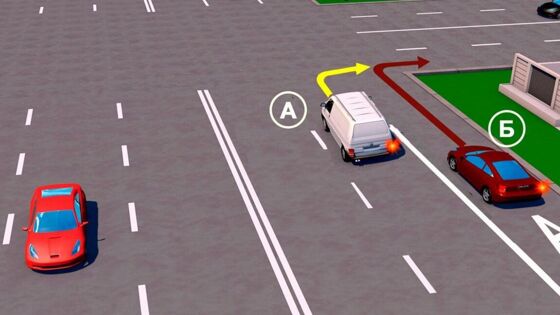 Сегодня мы рассмотрим ситуацию, в которой вам следует выяснить, можно ли поворачивать направо белому фургону и красному легковому авто.