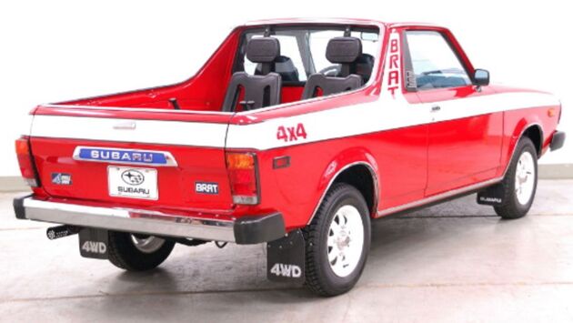 Одним из автомобилей японской марки Subaru является пикап Brat. Это двухместная машина, и простором она не отличалась в салоне, что многим не нравилось. Для большего комфорта мастера установили два кресла в кузове, но держаться в пути пассажирам предлагалось за специальные ручки, ремни безопасности напрочь отсутствовали.