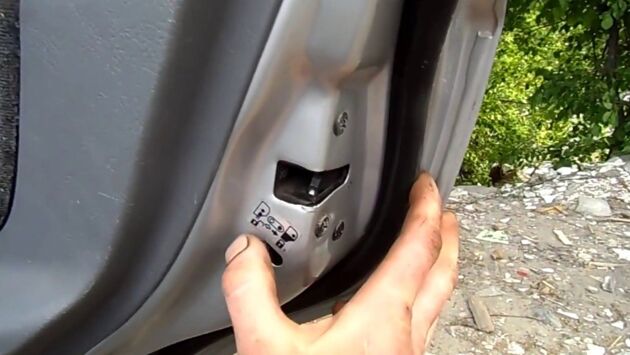 Если кто не в курсе, в торце задних дверей можно обнаружить небольшой рычажок или проем, в котором виднеется головка винта с плоским шлицем. Рядом с вышеописанными устройствами зачастую изображен замок. Это устройство призвано блокировать двери таким образом, чтобы их было невозможно открыть изнутри.