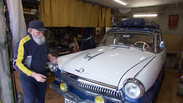 Аккуратно, чтобы не повредить краску, Валерий Иванович открывает капот своей старенькой Волги. Проверяет наличие масла и заряд аккумулятора.