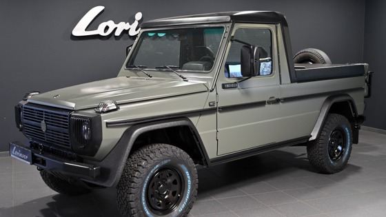 Внедорожник, превращенный в пикап, был выпущен под брендом Puch. До 1999 года такие автомобили сходили с конвейера завода Steyr-Daimler-Puch в австрийском Граце параллельно с Mercedes-Benz G-Class. Один из них оказался в распоряжении немецкого ателье Lorinser Classic -- армейский Puch 230 GE 1993 года выпуска, который отреставрировали и переоборудовали в двухместный пикап с грузовой площадкой.