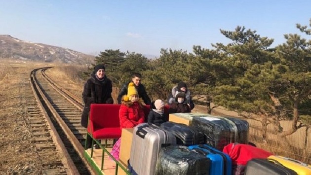Путь из КНДР в Россию оказался сложным: 32 часа на поезде, два часа на автобусе и пеший переход, который россияне решили преодолеть, погрузив чемоданы и детей на дрезину.