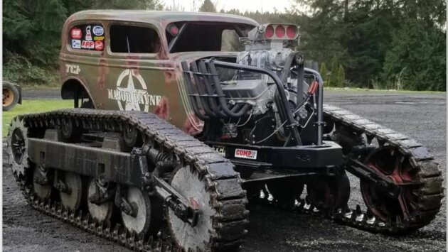 Первой работой на гусеничном ходу стал монстр-трак “Майор Пейн”. Но, данная переделка не стала “первым блином” из русской пословицы. Тут как раз все в тему.