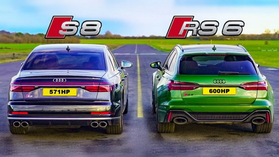 YouTube-канал carwow устроил дрэг-гонку между Audi S8 и Audi RS 6 Avant. У обеих моделей 4,0-литровые V8, 8-скоростные «автоматы» и полный привод quattro, обе стоят около 100 тысяч фунтов стерлингов. Быстрейшего определили по итогам серии параллельных стартов и замера эффективности тормозов.