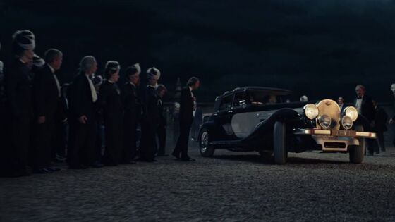 Очень похожий автомобиль появляется и в «Круэлле». Но если в «101 далматинце» это двухдверное купе с очень длинным капотом, то в новой картине кузов четырехдверный с более классическими пропорциями.