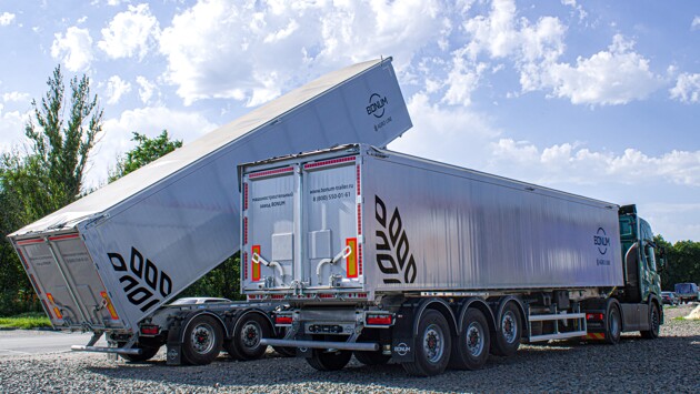 Нашумевшая новинка предприятия – самосвальные зерновозы с алюминиевым кузовом отгужены в Тулу. Техника перевозит до 30 тонн груза в рамках весового контроля, а универсальная конструкция позволяет перевозить палеты и выжимать максимум от эксплуатации техники. Дизайн полуприцепа выполнен по всем европейским стандартам, его не отличить от итальянского. Технические характеристики: – Угол подъема в 45 градусов подобран для оптимальной скорости и равномерности сброса груза) – Высота подъема кузова чуть более 10 метров (10,26 м) – Работает с одноконтурной и двухконтурной гидросистемой тягача. – Гидроцилиндр Binotto (производство Италия) максимальным давлением в 190 бар. Оборудование самосвала делает работу с ним удобной и безопасной: – Binotto Runstop 2000. Ограничивает подъем кузова до 45 градусов. – Кузов оснащен автоматическим механизмом – открывает фиксаторы дверной створки во время разгрузки – Фиксатор Bodyfix. Уменьшает нагрузку на гидроцилиндр во время движения, фиксирует кузов в одном положении обеспечивая его сохранность. Техника BONUM – единство функциональности, надежности и дизайна. И никаких компромиссов. https://www.bonum-trailer.ru/shop/8/96-zernovoz-bonum.html