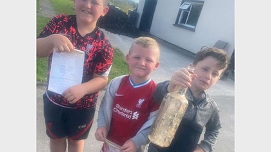 Родные братья Ойсин и Эоган О'Доэрти, а также их двоюродный брат Одраном О'Салливаном гуляли на пирсе в ирландском графстве Керри, когда заметили среди камней бутылку. Мальчики попросили их родственника достать ее и открыть.